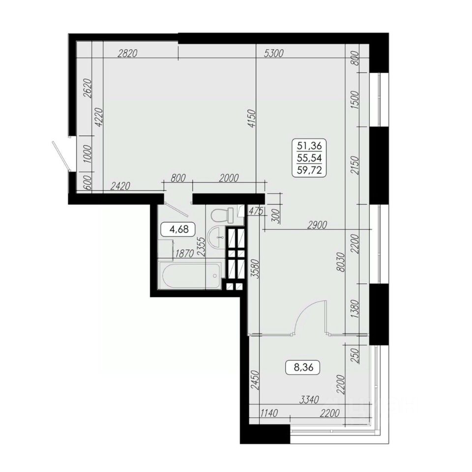 Общая площадь55,54 м2