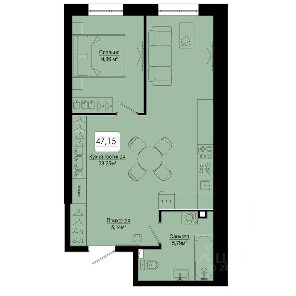 Общая площадь47,15 м2