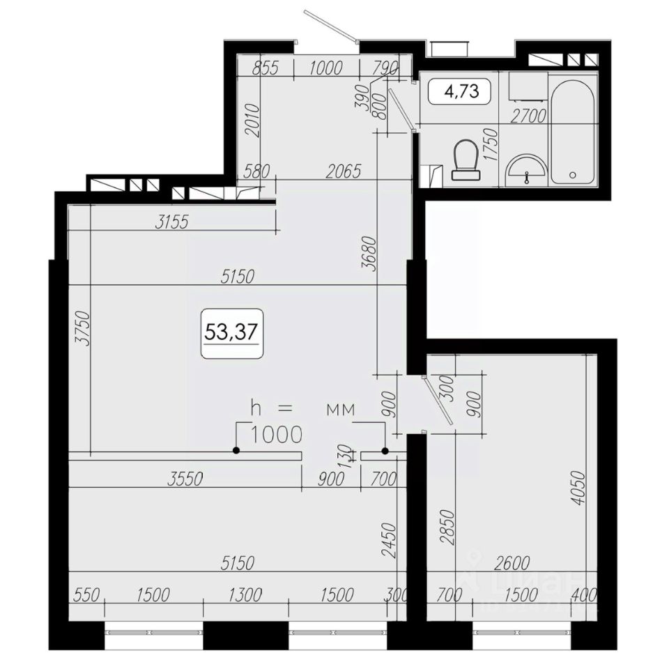 Общая площадь53,37 м2