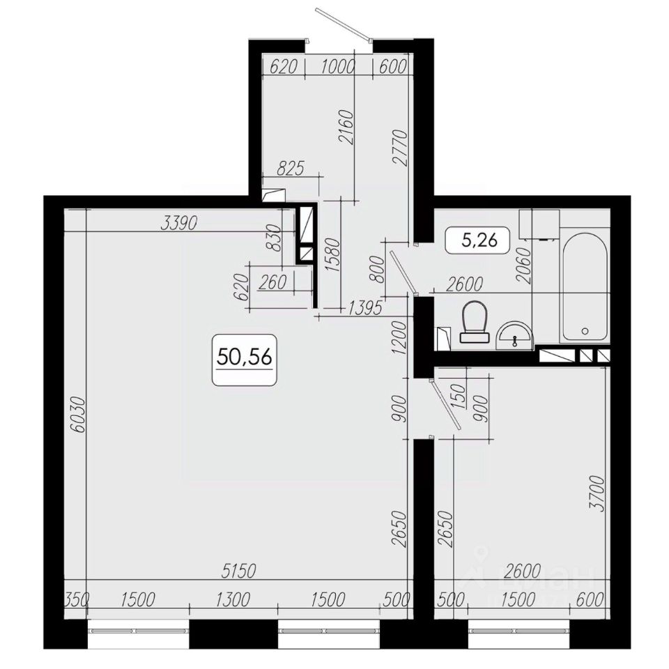 Общая площадь50,56 м2