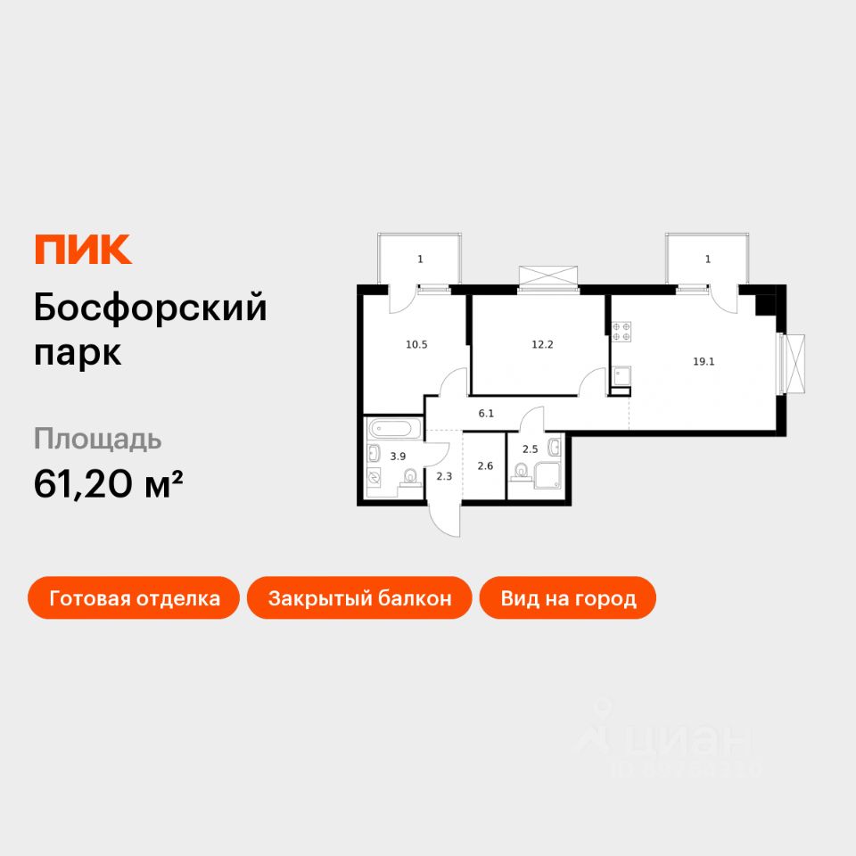 Продаётся 2-комн. квартира площадью 61,2 кв.м на 5 этаже 9 этажного дома (Корпус 4, Секция 1) проекта ПИК Босфорский парк. Светлый просторный подъезд на уровне земли, функциональная планировка, большие окна, c отделкой.