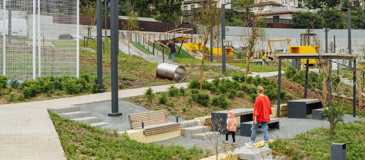 В квартале будет много мест для отдыха и активных игр, три вида парков и даже родник, который будет перетекать в ручей с порогами и препятствиями. На территории парков появятся амфитеатры и террасы. Здесь жители смогут отдыхать, гулять, общаться, учиться или работать на свежем воздухе. На естественных склонах будут обустроены игровые зоны для детей - с горками, сетками, канатами и скалолазными зацепами.