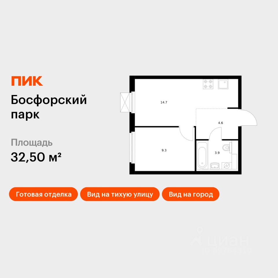 Продаётся 1-комн. квартира площадью 32,5 кв.м на 6 этаже 9 этажного дома (Корпус 4, Секция 1) проекта ПИК Босфорский парк. Светлый просторный подъезд на уровне земли, функциональная планировка, большие окна, c отделкой.