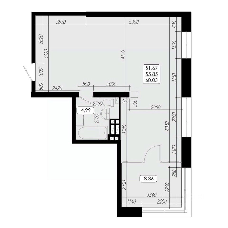 Общая площадь55,85 м2