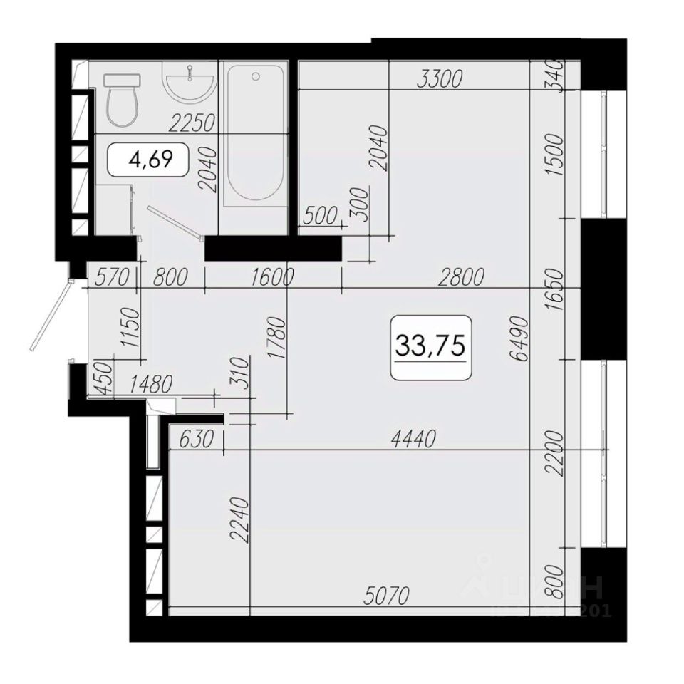 Общая площадь33,75 м2
