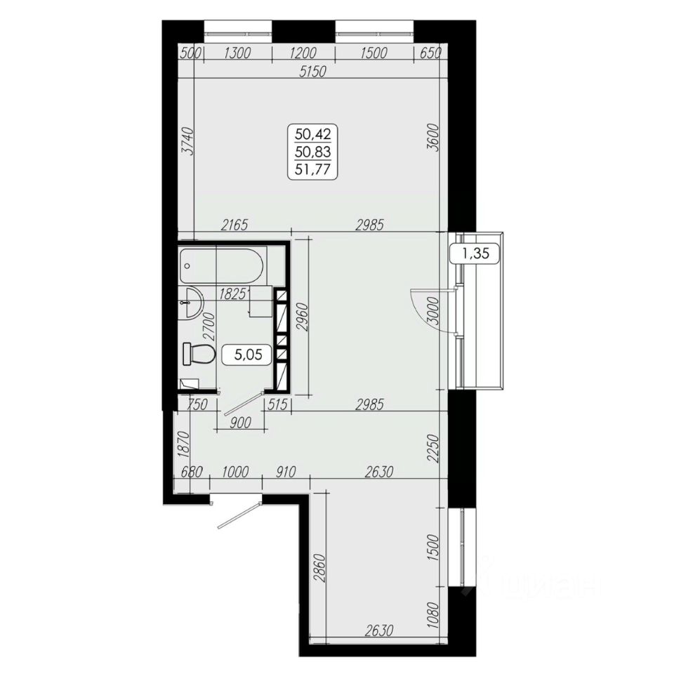 Общая площадь50,83 м2