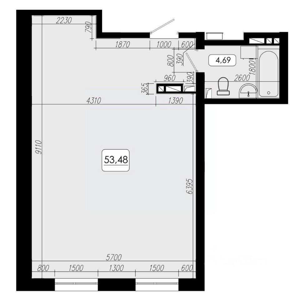 Общая площадь53,48 м2