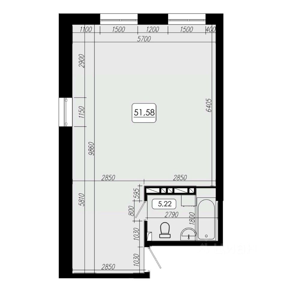 Общая площадь51,58 м2
