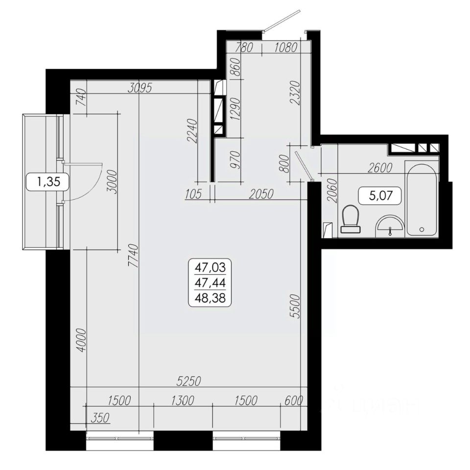 Общая площадь47,44 м2