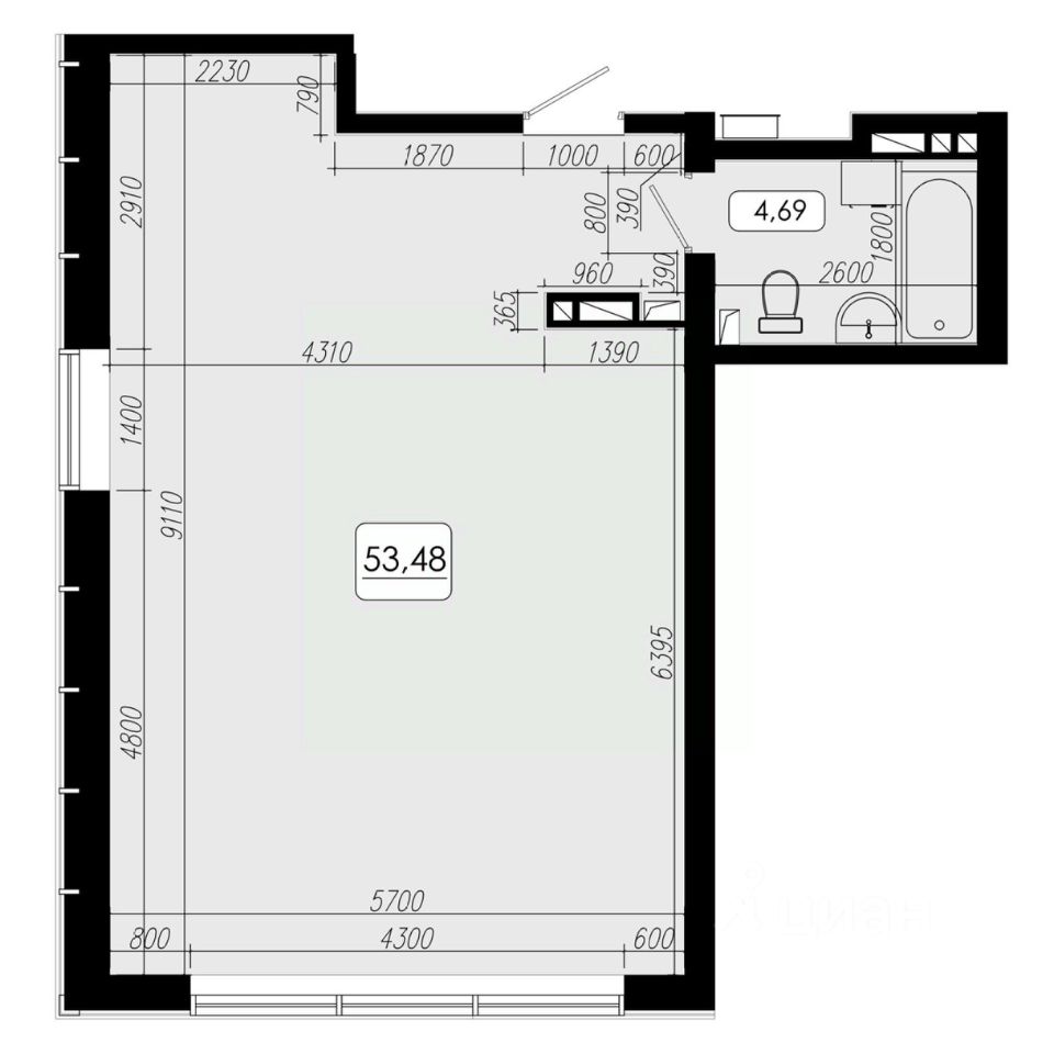 Общая площадь53,48 м2