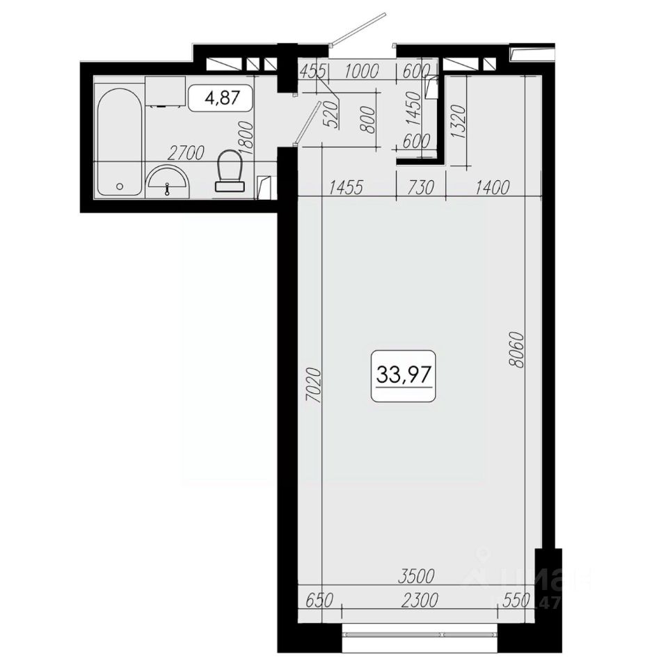 Общая площадь33,97 м2