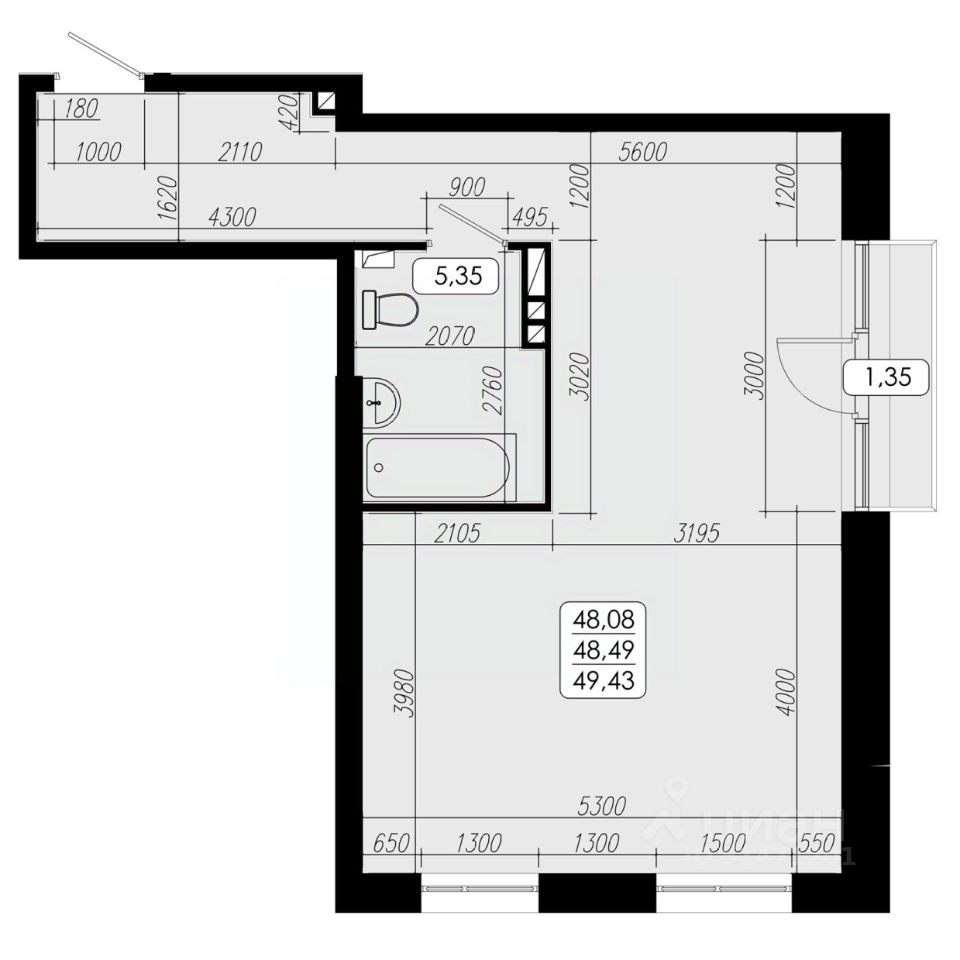 Общая площадь48,49 м2