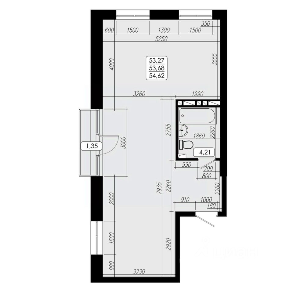 Общая площадь53,68 м2