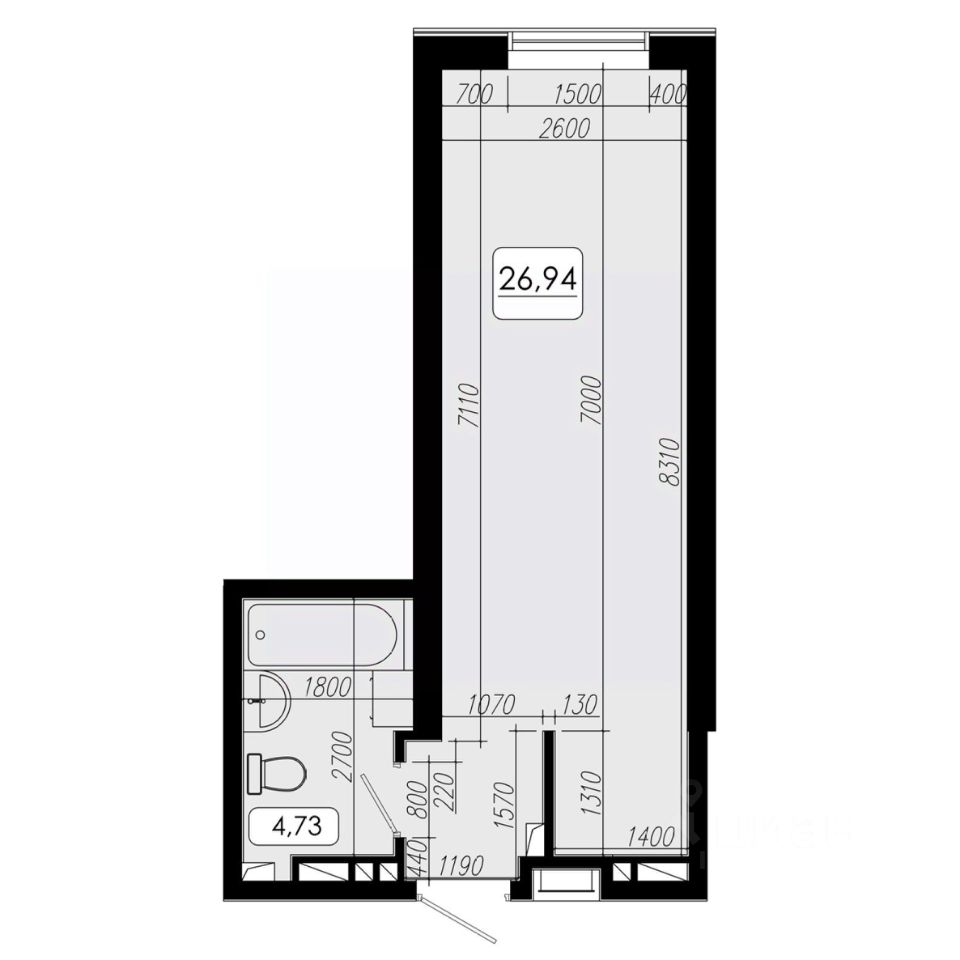 Общая площадь26,94 м2