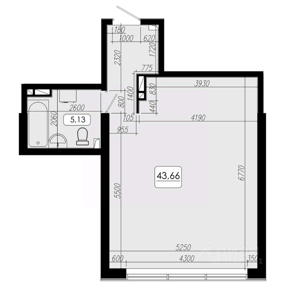Общая площадь43,66 м2