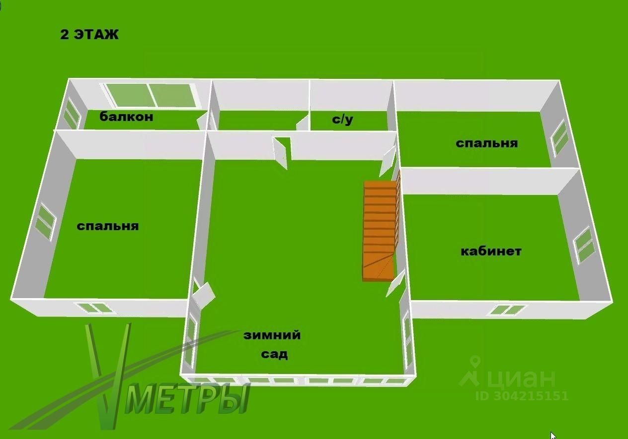 Второй этаж - две спальни, кабинет, санузел, балкон, зимний сад.