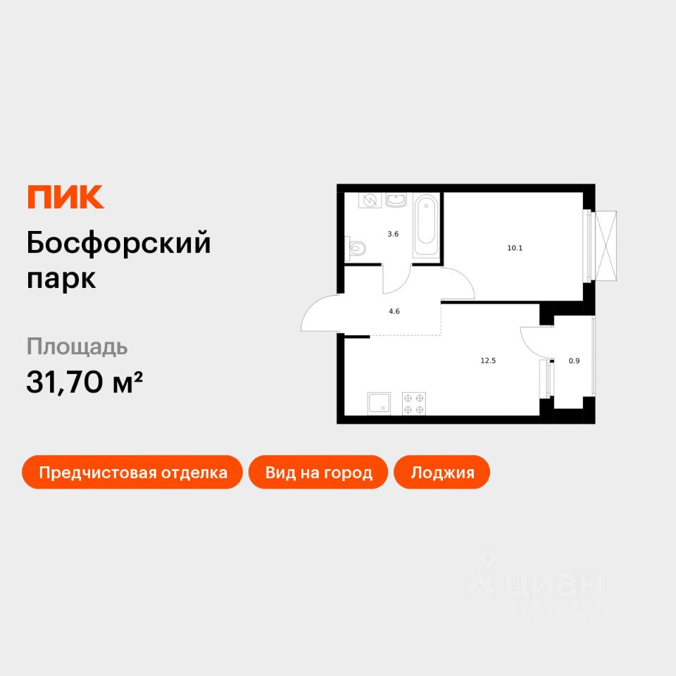 Продаётся 1-комн. квартира площадью 31,7 кв.м на 17 этаже 17 этажного дома (Корпус 5, Секция 1) проекта ПИК Босфорский парк. Светлый просторный подъезд на уровне земли, функциональная планировка, большие окна, предчистовая отделка.