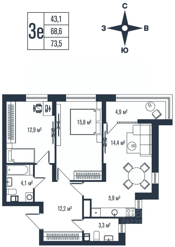 Общая площадь73,5 м2
