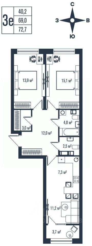 Продаётся 3-комнатная квартира в сданном доме (Дом 2), срок сдачи: IV-кв. 2025, общей площадью 72.7 кв.м., на 14 этаже. Новый жилой комплекс ''Футурист'' от застройщика ''СИК Девеломпент-юг'' расположен по адресу город Владивосток, улица Карбышева.
