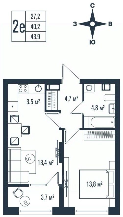 Общая площадь43,9 м2