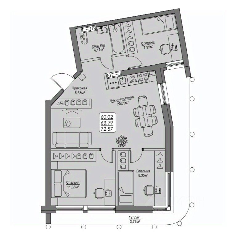 Общая площадь63,79 м2