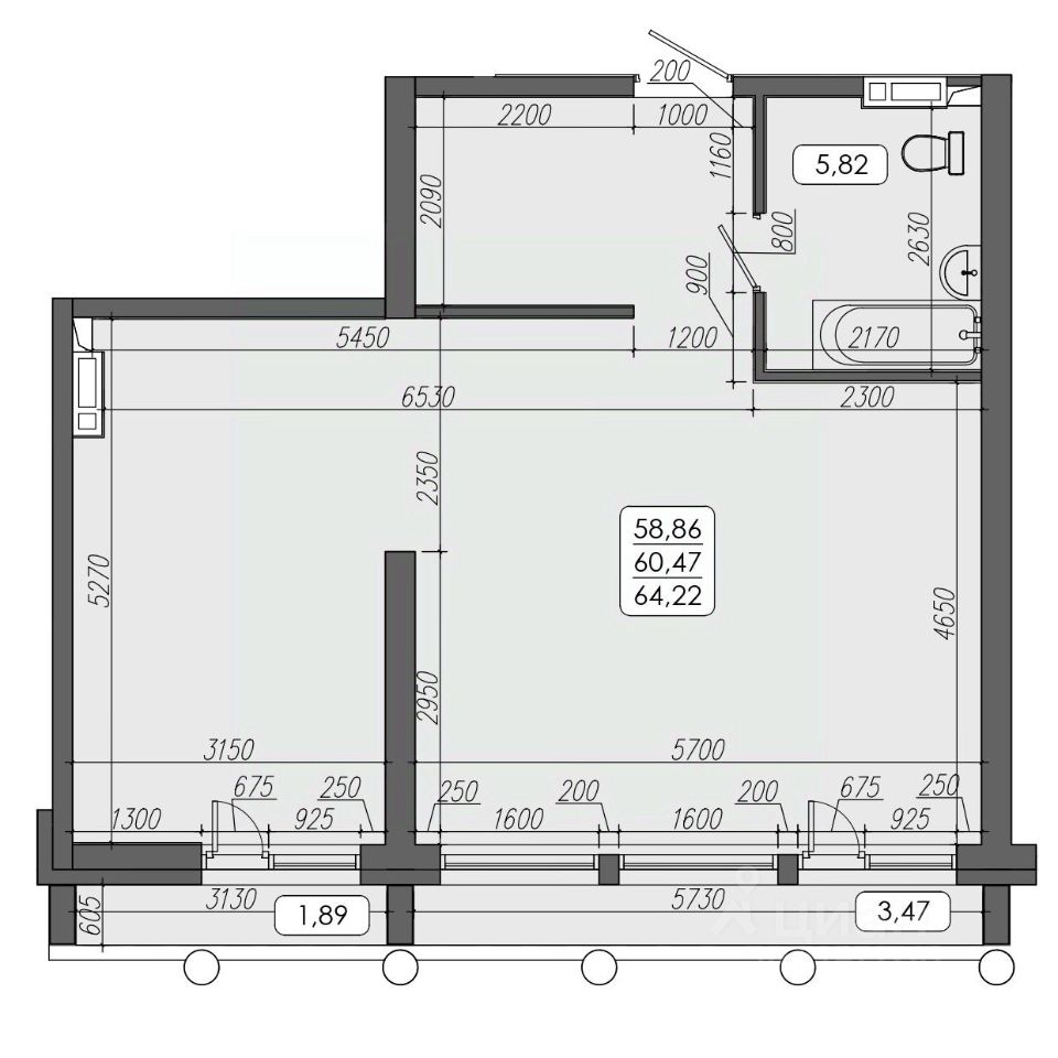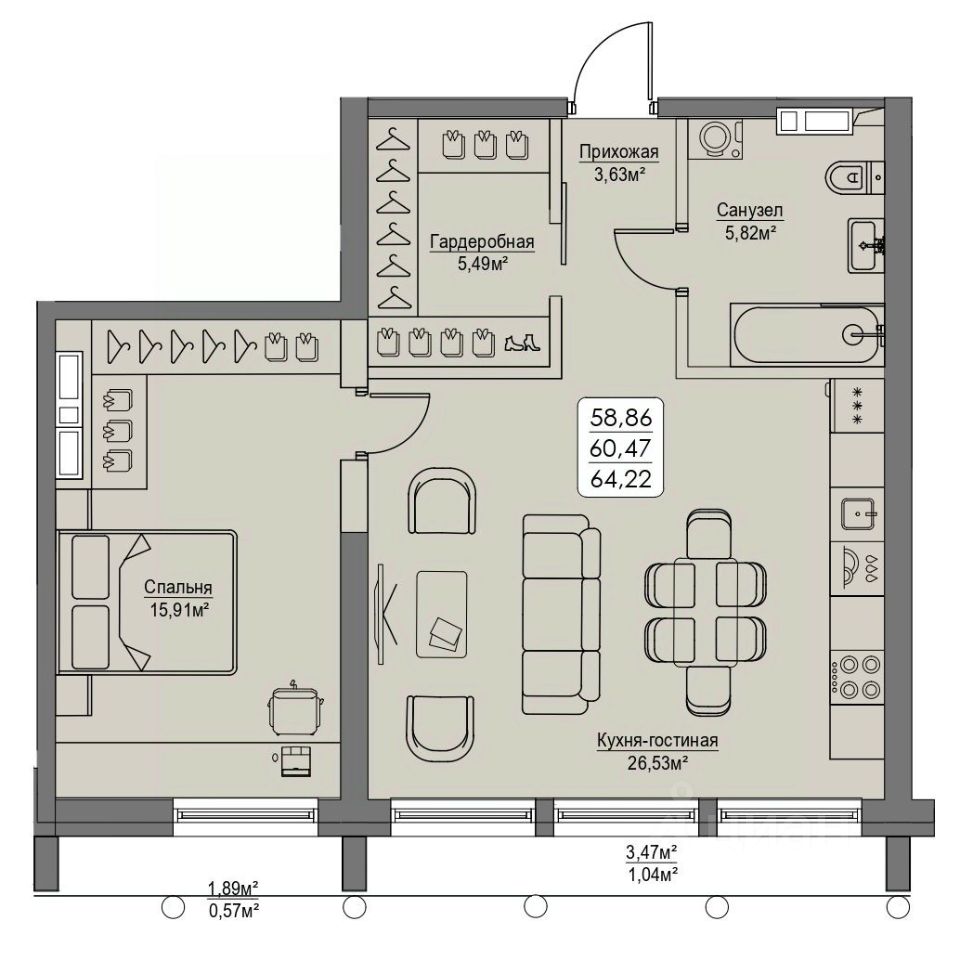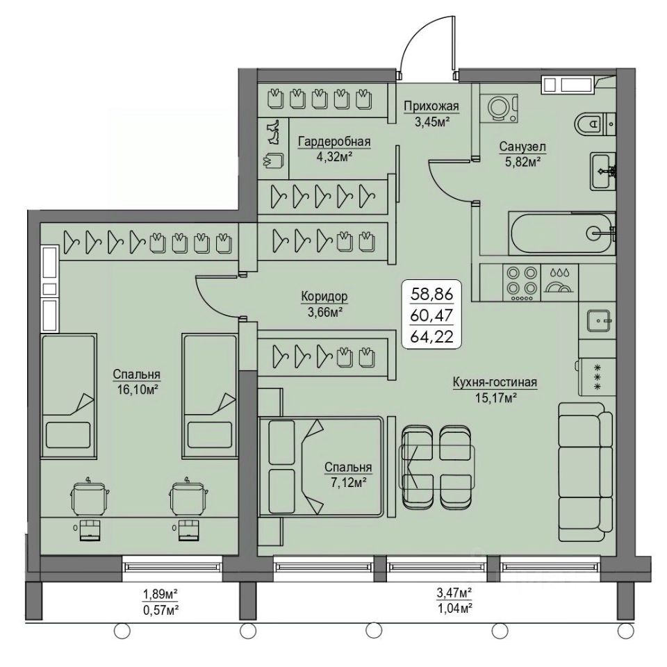 Общая площадь60,47 м2