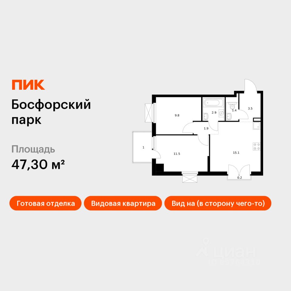 Продаётся 2-комн. квартира площадью 47,3 кв.м на 7 этаже 9 этажного дома (Корпус 4, Секция 1) проекта ПИК Босфорский парк. Светлый просторный подъезд на уровне земли, функциональная планировка, большие окна, c отделкой.