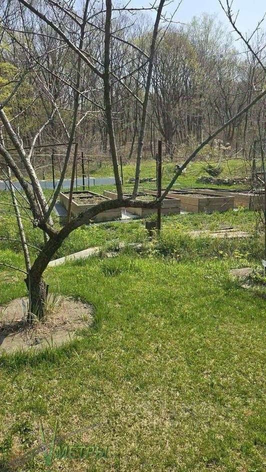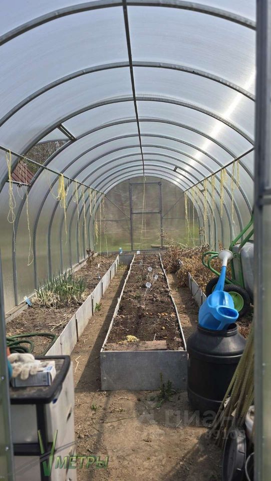 Все в газонах, куча посадок, кустов, высокие грядки из лиственницы, 3 теплицы --