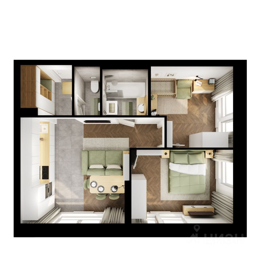 В пешей доступности есть всё необходимое для комфортной жизни: школы, детские сады, поликлиника и магазины. До крупных торговых центров ''Калина Молл'' и ''Луговая'', а также супермаркета ''Реми'' - всего 5 минут на машине. А до озера на Сафонова, которое отлично подходит для прогулок и отдыха, можно дойти пешком за 9 минут. Живописная Леопардовая набережная - в 10 минутах на автомобиле. Из квартала можно будет выехать как на улицу Борисенко, так и на улицу Сафонова. Артикул 918476 (Застройщик ООО ''СЗ ''Юстина'')