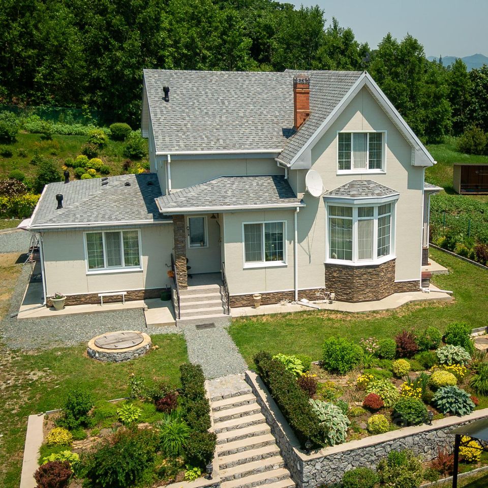 Предлагаем к покупке современный коттедж в районе Кедра. Дом выполнен очень качественно, из добротных дорогостоящих материалов и оборудования, с удобной для жизни планировкой и комфортной хорошо продуманной инфраструктурой. Участок в 20 соток находится недалеко от центральной автомагистрали, при этом, своим расположением и озеленением, полностью изолирован от проезжающих машин и внешнего шума. Дом построен в два этажа. Верхний этаж мансарда с высокими потолками. Учитывая, что кровля выполнена из качественной мягкой черепицы - на мансарде тихо, звуки дождя и ветра не слышны. Стены дома выполнены из качественного газоблока: с северной стороны - толщиной 400 мм, с остальных сторон по 300 мм.