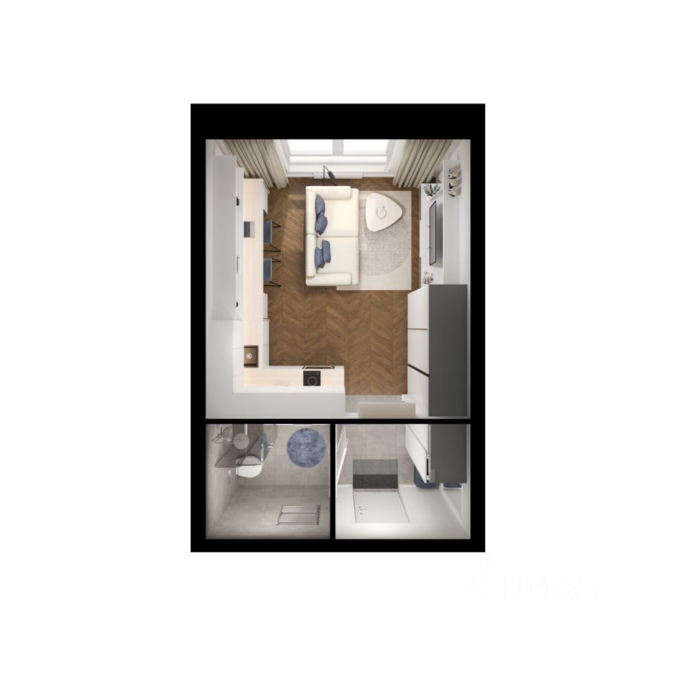 Продаётся квартира-студия площадью 24,1 кв.м на 21 этаже 28 этажного дома (Корпус 2, Секция 2) проекта ПИК Борисенко 48. Светлый просторный подъезд на уровне земли, функциональная планировка, большие окна, предчистовая отделка.
