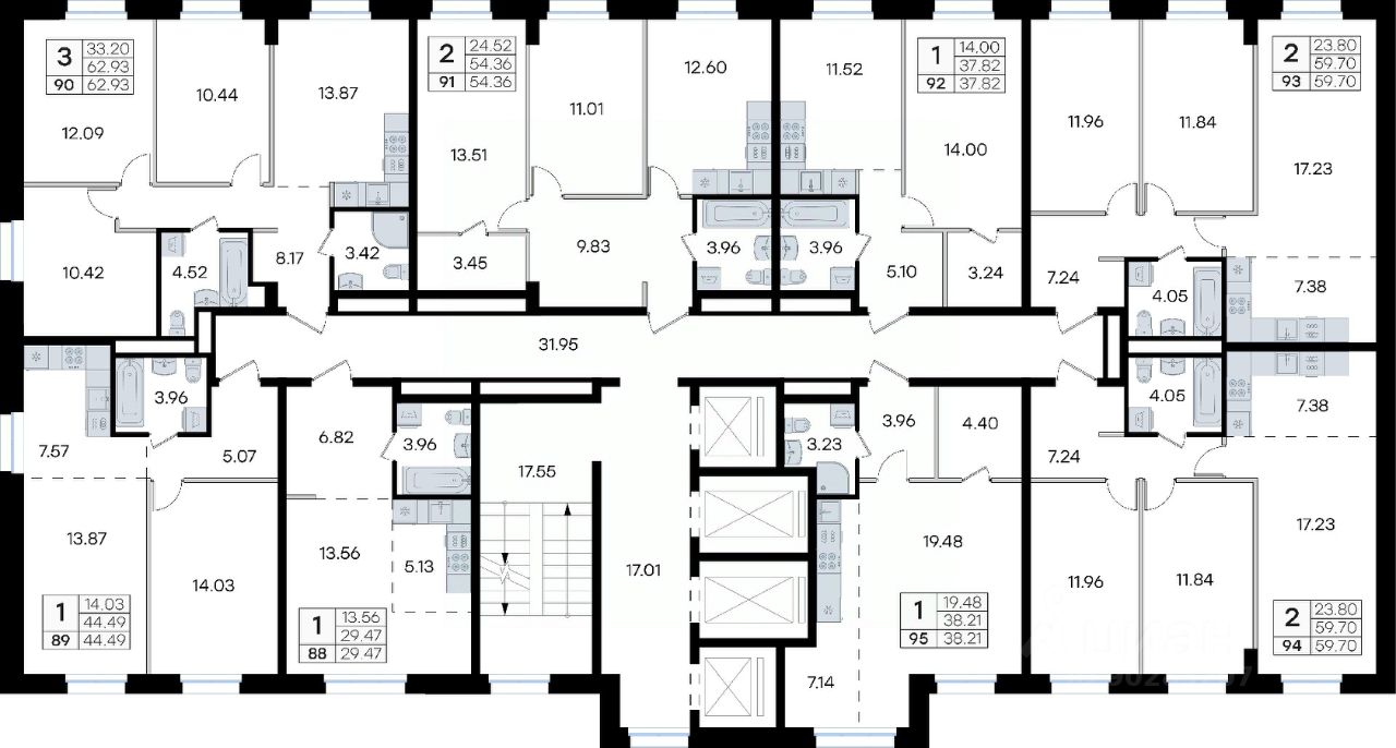 Продается 3-комн. квартира на 12-м этаже в жилом комплексе GloraX Тухачевского — современном проекте нового формата в престижном районе Владивостока. Общая площадь лота составляет 62,93 кв. м, из которых 33,20 кв. м отведено под жилую и 13,87 кв. м под кухонную зону. Номер квартиры - 90.