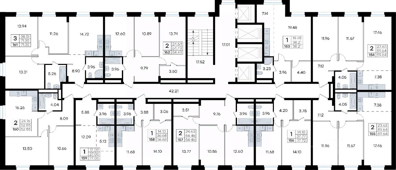Продается квартира-студия на 17-м этаже в жилом комплексе GloraX Тухачевского — современном проекте нового формата в престижном районе Владивостока. Общая площадь лота составляет 38,21 кв. м, из которых 19,48 кв. м отведено под жилую и 7,14 кв. м под кухонную зону. Номер квартиры - 153.