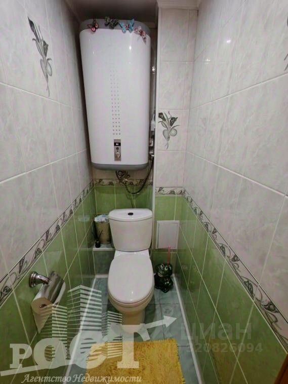 Раздельный санузел, выполненный в современном стиле с использованием кафельной плитки.