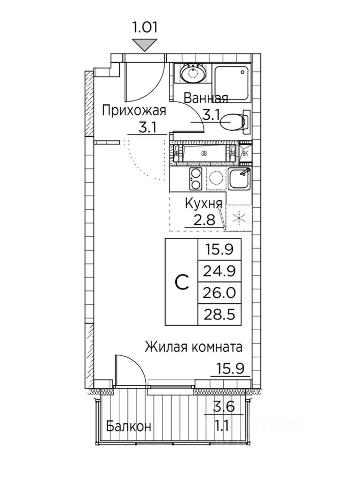 Остеклённые лоджии и большие окна наполняют комнаты светом.