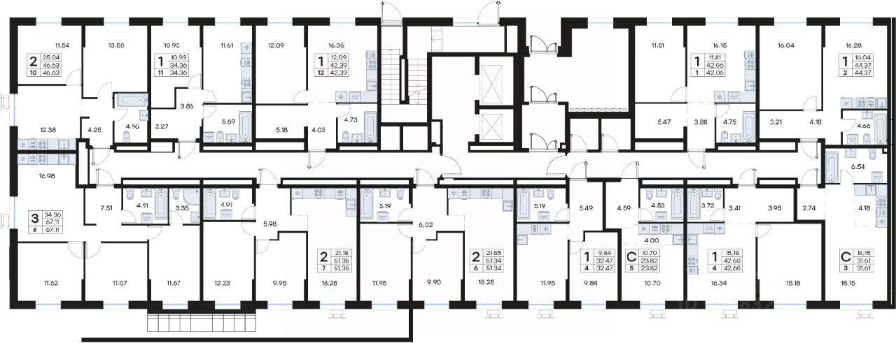 Продается 1-комн. квартира на 1-м этаже в квартале GloraX Клубный. GloraX Клубный - уникальный видовой проект с выделяющейся архитектурой в развитом районе Владивостока. Общая площадь лота составляет 42,60 кв. м, из которых 15,18 кв. м отведено под жилую и 16,34 кв. м под кухонную зону. Номер квартиры - 4.