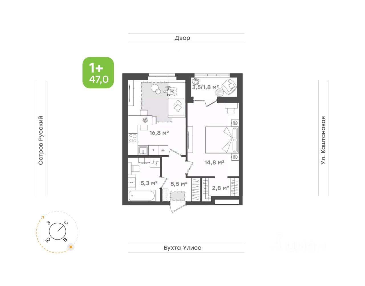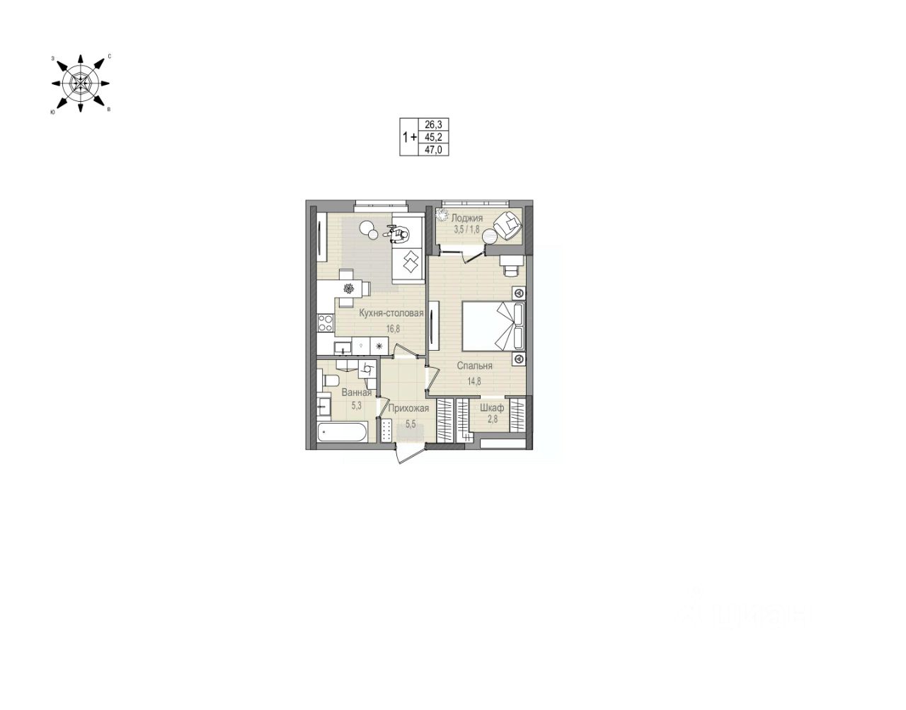 Кухня-столовая 16,8 кв.м место для ваших кулинарных экспериментов и отдыха за домашним кинотеатром