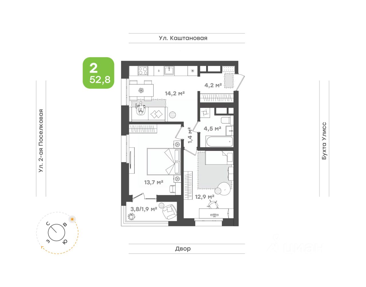 продам 2-к, Поселковая 3-я, 16/110 789 600 ₽