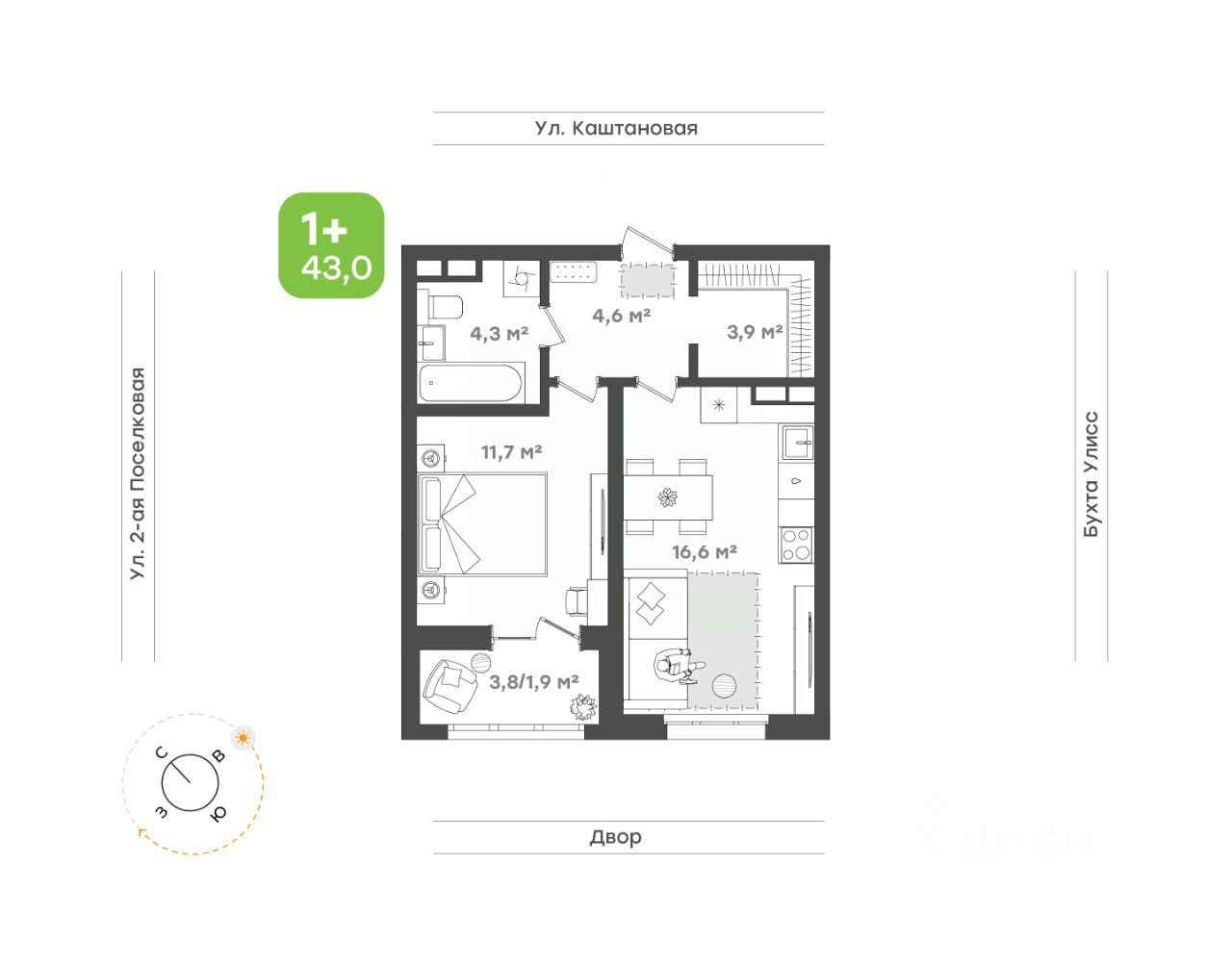 Просторная прихожая 4,6 кв.м с гардеробной 3,9 кв.м, где удобно организовать хранение вещей