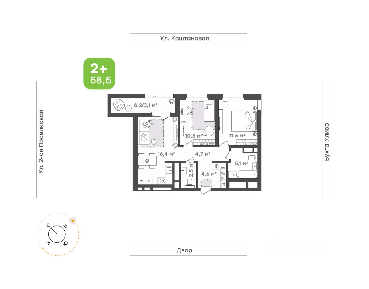 продам 2-к, Поселковая 3-я, 16/111 262 000 ₽