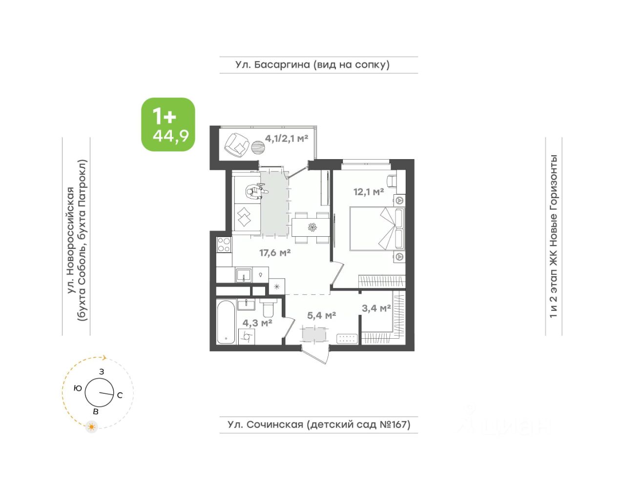 Кухня-гостиная 17,6 кв.м. с выходом на балкон для шумных компаний и тёплых встреч