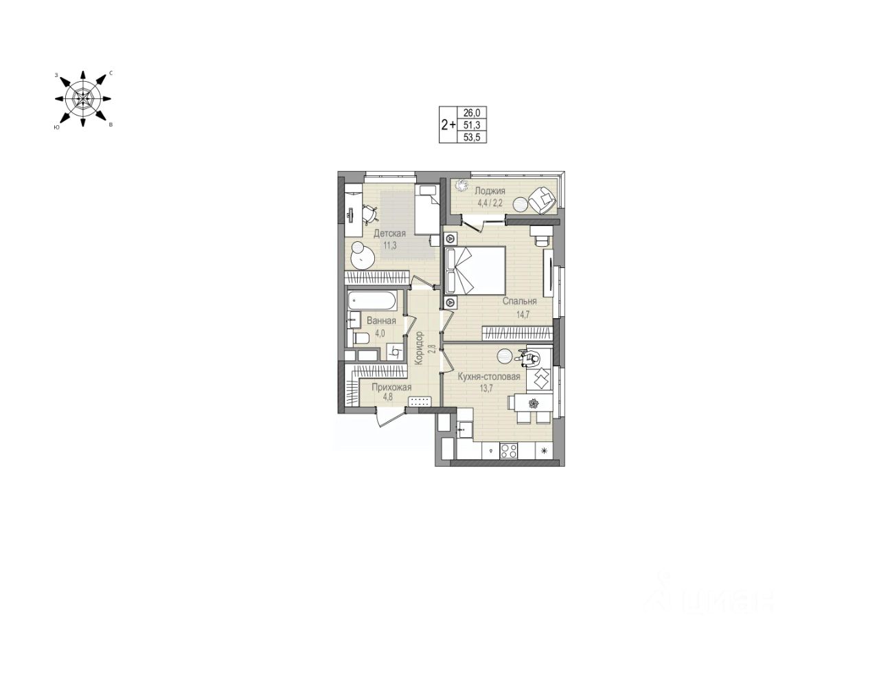 продам 2-к, Поселковая 3-я, 16/49 087 390 ₽