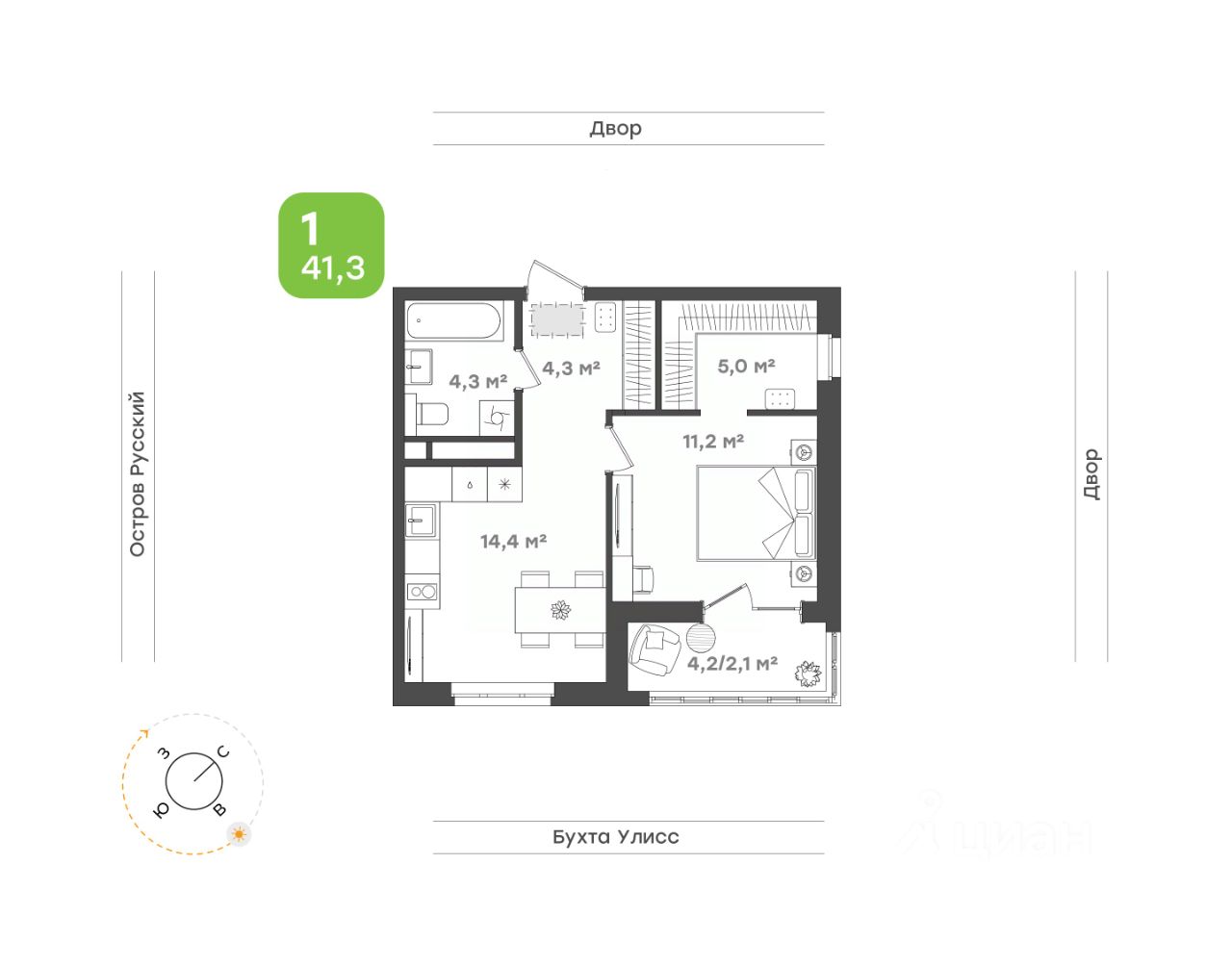 Спальня 11,2 кв.м с выходом на лоджию, где можно наслаждаться свежим воздухом и красивым видом на окружающий пейзаж