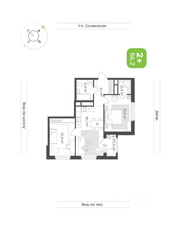 Для семьи, стремящейся к гармонии между городским ритмом и отдыхом на природе Просторная кухня-гостиная изящно разделена на две функциональные зоны, создавая уютное пространство для кулинарных экспериментов и приятного отдыха, а также служит стильным разделением между детской и родительской спальнями. Выход на лоджию превращает дом в настоящий уголок релакса Детская комната с выделенным местом под систему хранения и окном, открывающим вид на лес, дарит атмосферу спокойствия и вдохновения, где легко воплощаются мечты и развиваются творческие идеи Мастер-спальня, оснащённая собственным санузлом с душевой кабиной, становится личным оазисом уединения и обеспечивает максимальное удобство и приватность Дополнительный санузел с местом под стиральную машину и просторная прихожая с интегрированной системой хранения завершают идеальную планировку квартиры, делая её уютным домом для современной семьи