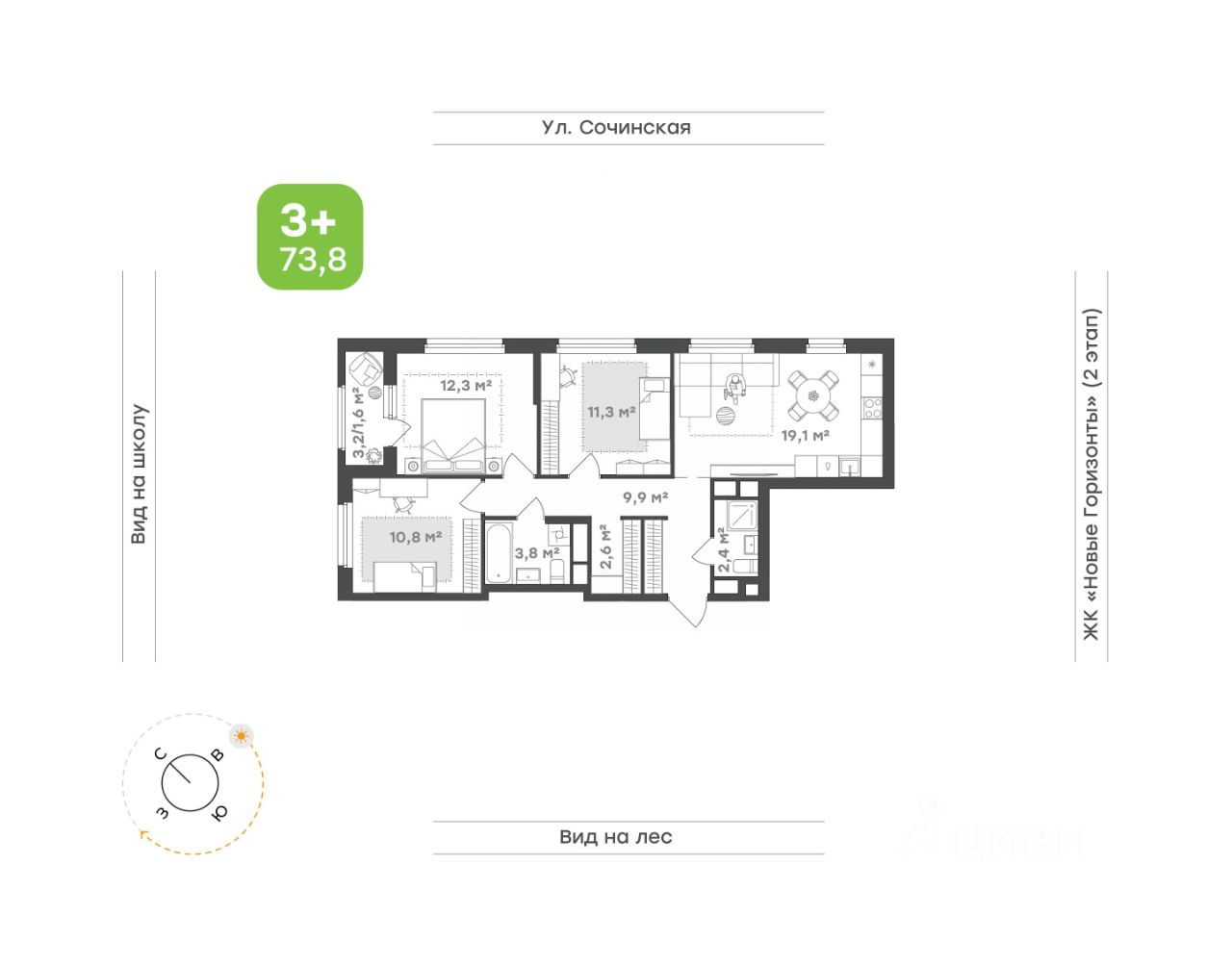 Просторная, светлая квартира, где каждый член семьи найдёт себе место Кухня-гостиная — сердце квартиры, где удобно собираться всей семьёй по вечерам, устраивать ужины и тёплые посиделки с друзьями Спальня — уединённое пространство с удобным местом для хранения и выходом на лоджию. Здесь можно просыпаться с видом на школу, наслаждаясь утренним светом и свежим воздухом Две спальни подойдут для детей, гостей или рабочего кабинета.