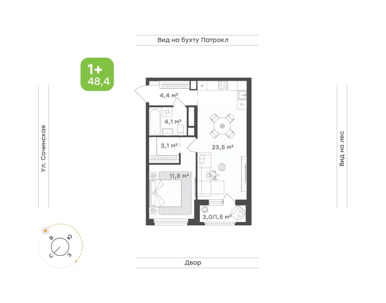 Функциональный санузел с местом под стиральную машину дополняет удобство квартиры, обеспечивая практичность в повседневной жизни