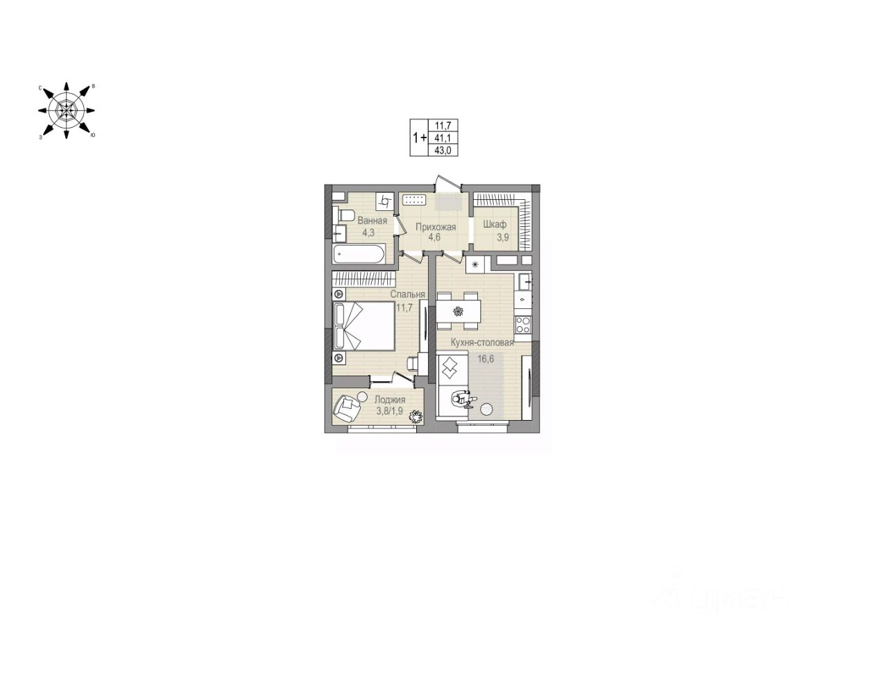 Просторная прихожая 4,6 кв.м с гардеробной 3,9 кв.м, где удобно организовать хранение вещей