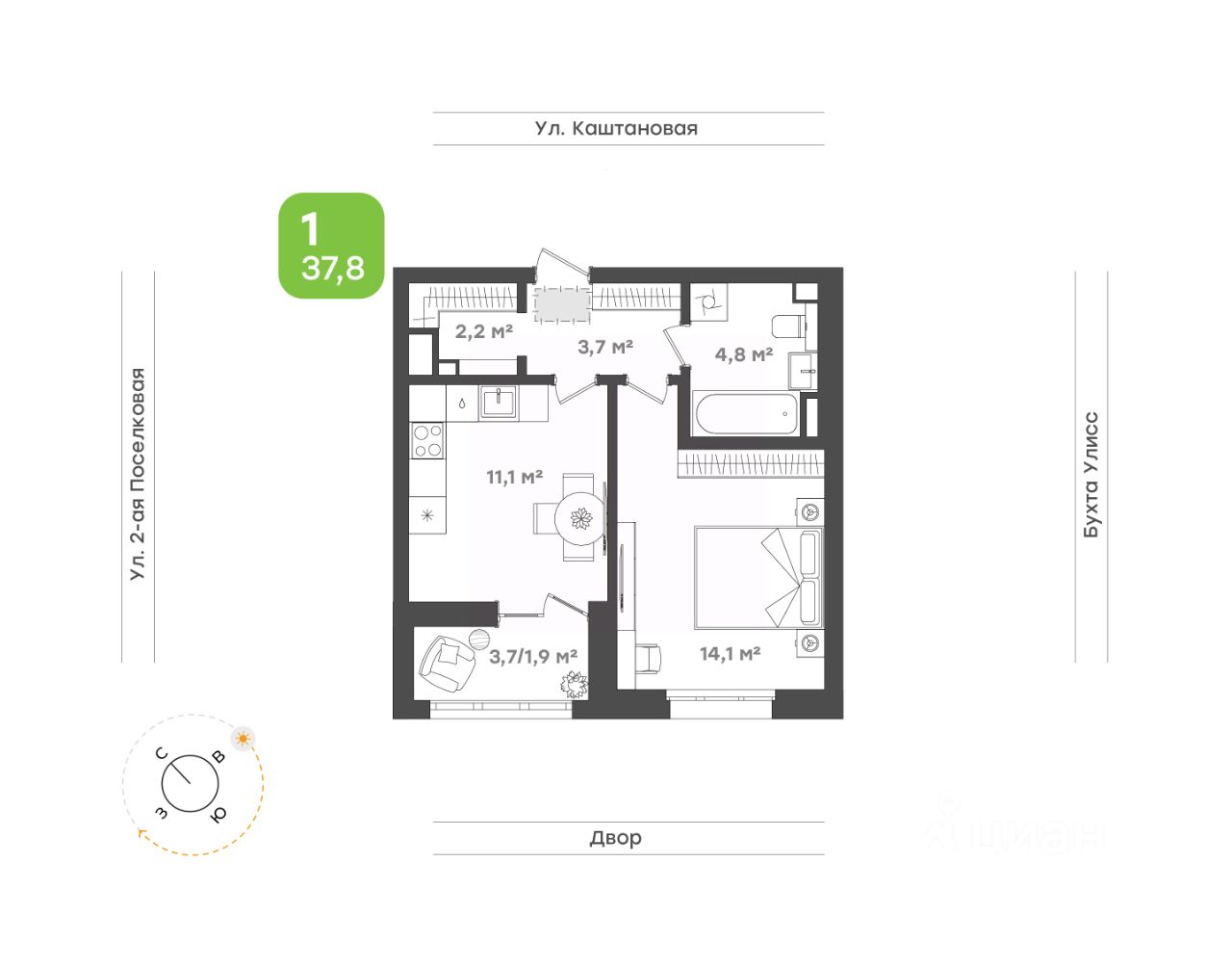 Спальня 14,1 кв.м для отдыха и сна