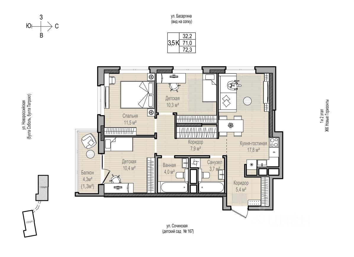 Вторая детская 10,4 кв.м. с выходом на балкон и видом на морские пейзажи