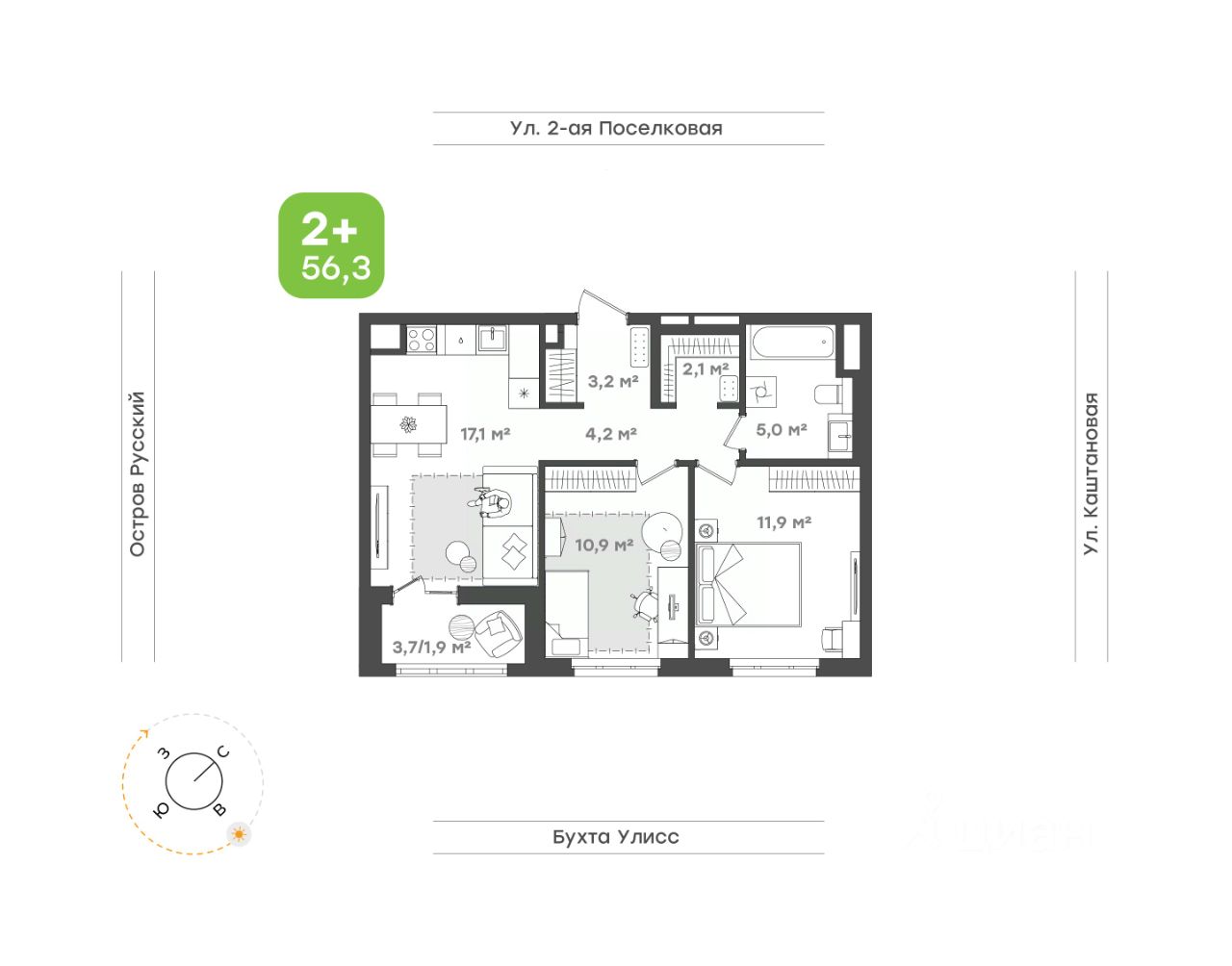 продам 2-к, Поселковая 3-я, 16/410 718 100 ₽
